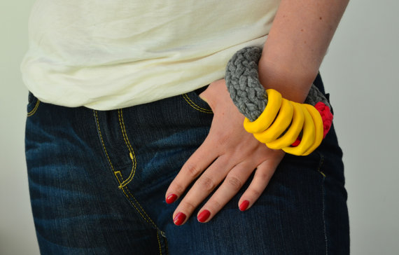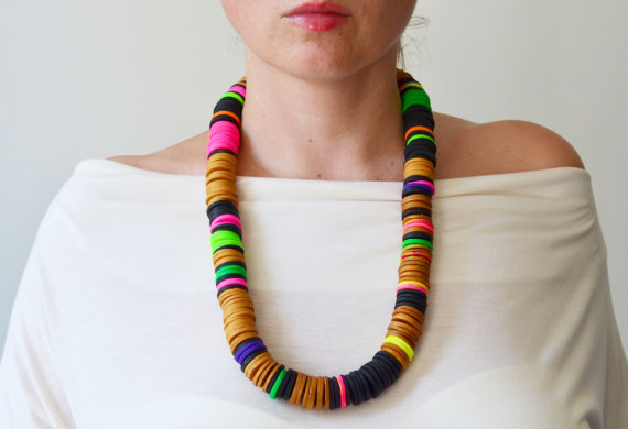 This collection in my opinion can be described as chic simplicity with a touch of multi-cultured facets. The owner of this shop, Nao, creates these lovely eco-friendly chunky necklaces from African clothing and uses polymer textile clay hoops to accessorize the choker of the necklaces. She also designs bracelets to match the bold necklaces and also creates thinner, minimalistic necklaces for the more simply accessorized woman. The fascinating thing about her designs is that you can purchase several different color clay hoops to mix and match back to your outfit of the day. Her use of ethnic blending translates to bold and beautiful accessories that can be worn on day-to-day basis. Nao was incredibly generous enough to send me one of my very own handmade necklaces to keep.
