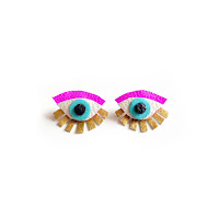 {from left to right: eye ear jacket $28 – lip earring $48 – pink galaxy necklace $126 – neon leather wallet $64}
