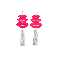 {from left to right: eye ear jacket $28 – lip earring $48 – pink galaxy necklace $126 – neon leather wallet $64}