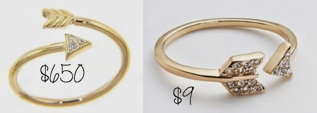 Splurge: Ron Herman Diamond Arrow ~ $650 Steal: Kohl’s Arrow Ring ~ $9