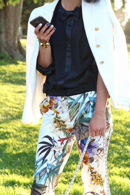 I absolutely adore this outfit. It has inspired me to recreate it and find similar pieces so I can make it an outfit of my own! I’m in love with patterned pants or pants with any type of design on them, and to me the more color the better. I love these tropical pants because you can just pair it with a a simple black blouse and I love the white blazer on top. It is an effortless look that is super chic. I Cannot wait for Spring to rock a similar look like this one!