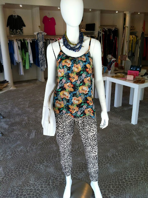 The second photo is a mannequin that was styled at the boutique I work at, and I am loving the mix of prints. It is the Shirred Cami and Cuffed pant by Tucker along with a fun DANNIJO necklace. I may have to take this one off the mannequin and buy it for myself!