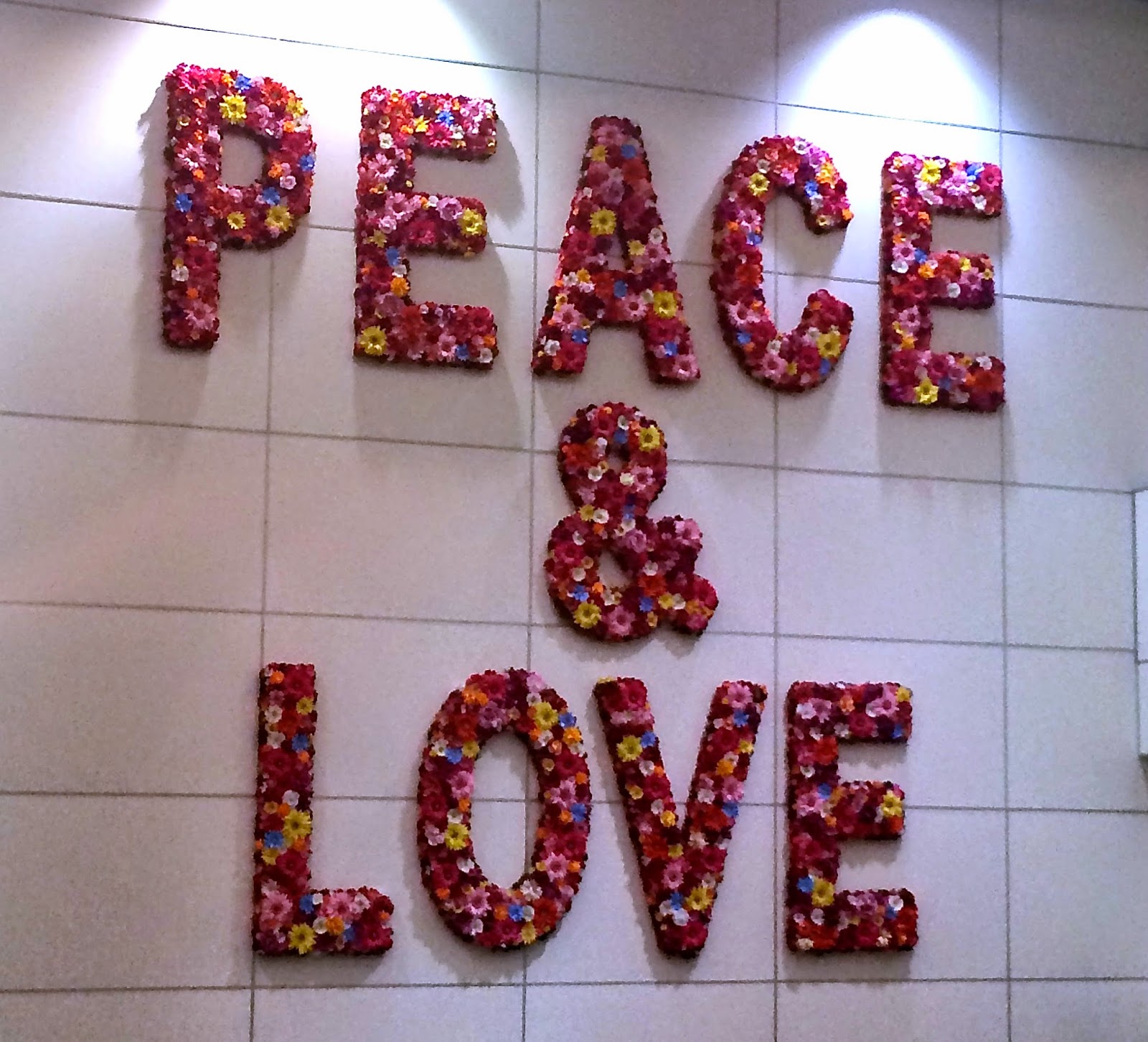 {Beautiful flower display coming down the escalator at MIA}