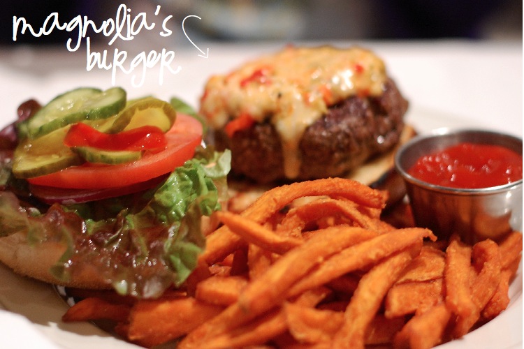 {magnolia’s burger topped with pimento cheese}