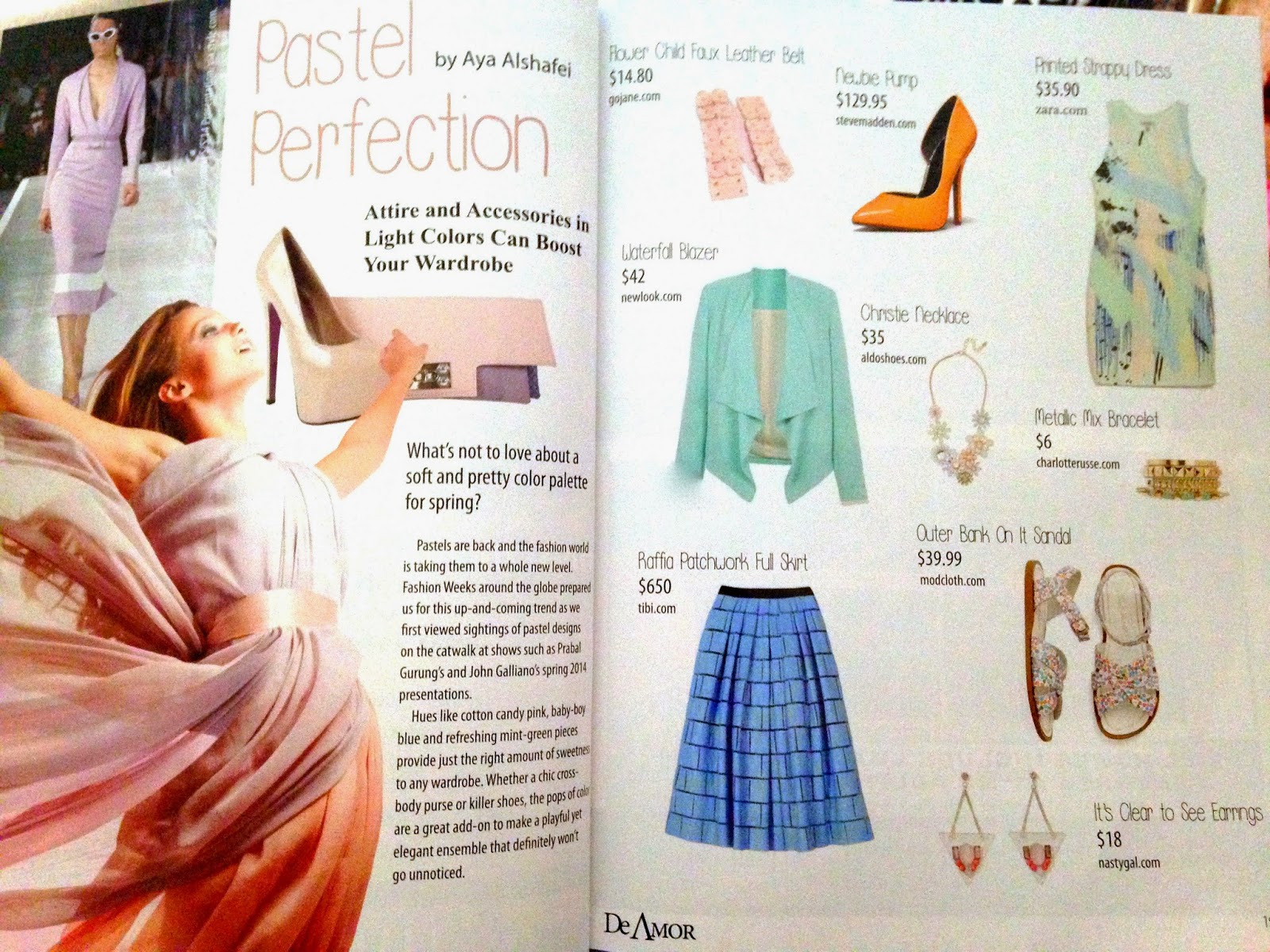 I was gifted with another fabulous opportunity this year, all thanks to my uncle. He got me a position as a writer for a new Columbia based lifestyle magazine called DE AMOR Magazine, where I write about all things fashion related. I finally got to see my very first article published in the magazine, and to see my name & writing on print was a glorious feeling! Take a look: