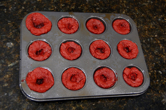 Once the cupcakes were done, I poked a hole in the middle so the cheesecake