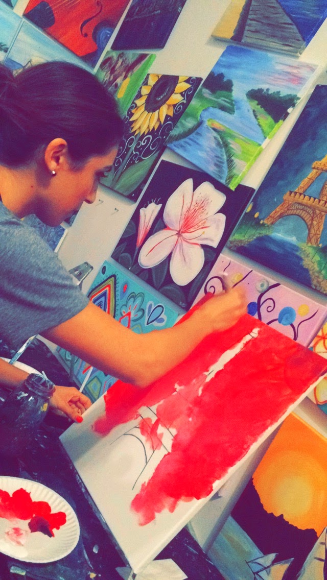 Last week was a little rough for me. I was trying to balance work, school, and personal life all at once and without any kind of break. I like to spend my Sundays rejuvenating and preparing for the week ahead, but due to my last minute trip to Dallas, I flew in early Monday and pushed through til the end of the week. I was exhausted. It even got to the point where I was on the verge of tears, and everything that I had going on almost took over. Thankfully, a friend came into town mid-week and allotted some much needed time for doing mindless things. It was fortunate that we both have a love for painting, so we went over to Wine & Design in West Ashley for open studio night.